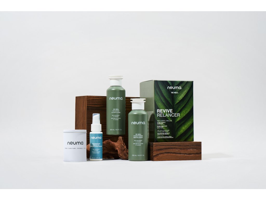 - NEUMA Re‑Neu Conditioner – lehký kondicionér, který dodává výživu a zklidnění, posiluje vlasy rostlinným proteinem a chrání barvu díky slunečnicovému oleji.