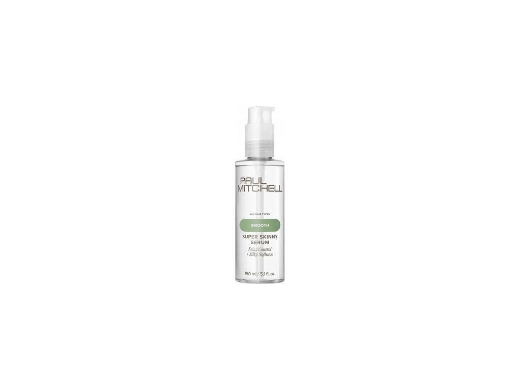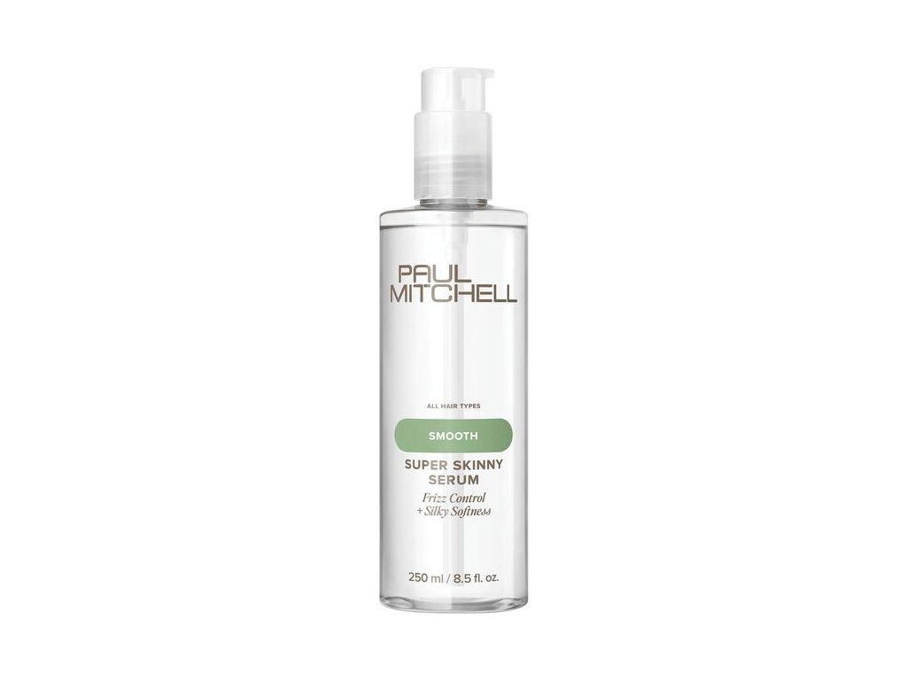 Uhlazující sérum Paul Mitchell Super Skinny Serum krotí nepoddajné vlasy a dodává vlasům lesk. Super Skinny Serum Complex dodává vlasům hebkost a zkracuje dobu schnutí až o 30 %. Obsažené látky, které jsou odolné proti teplu, chrání povrch vlasů lámáním a poškození mechanickými vlivy.